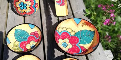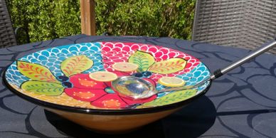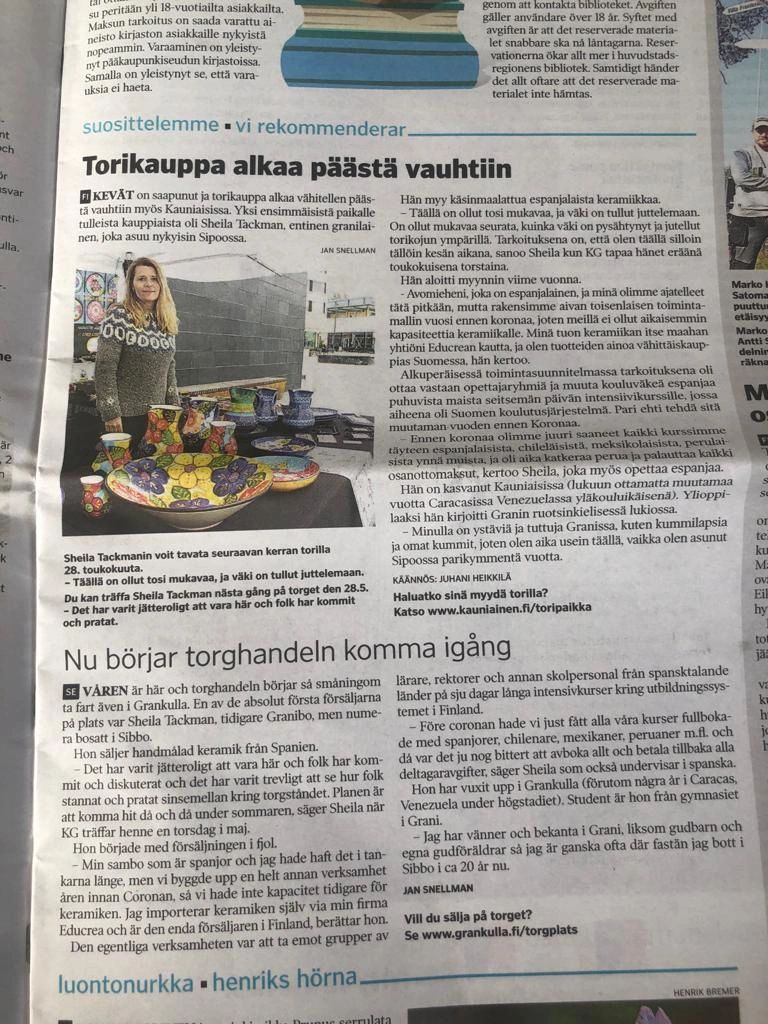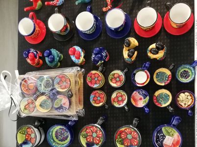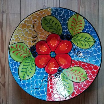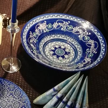 Handmålad keramik från Córdoba, Spanien. Pigga upp festdukningen och vardagen! Säljs på marknader, från m/s Pauline, i presentboden i Sibbo och på Pörtö.