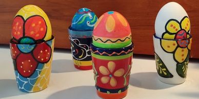 Kuvassa on maalattuja kananmunia.